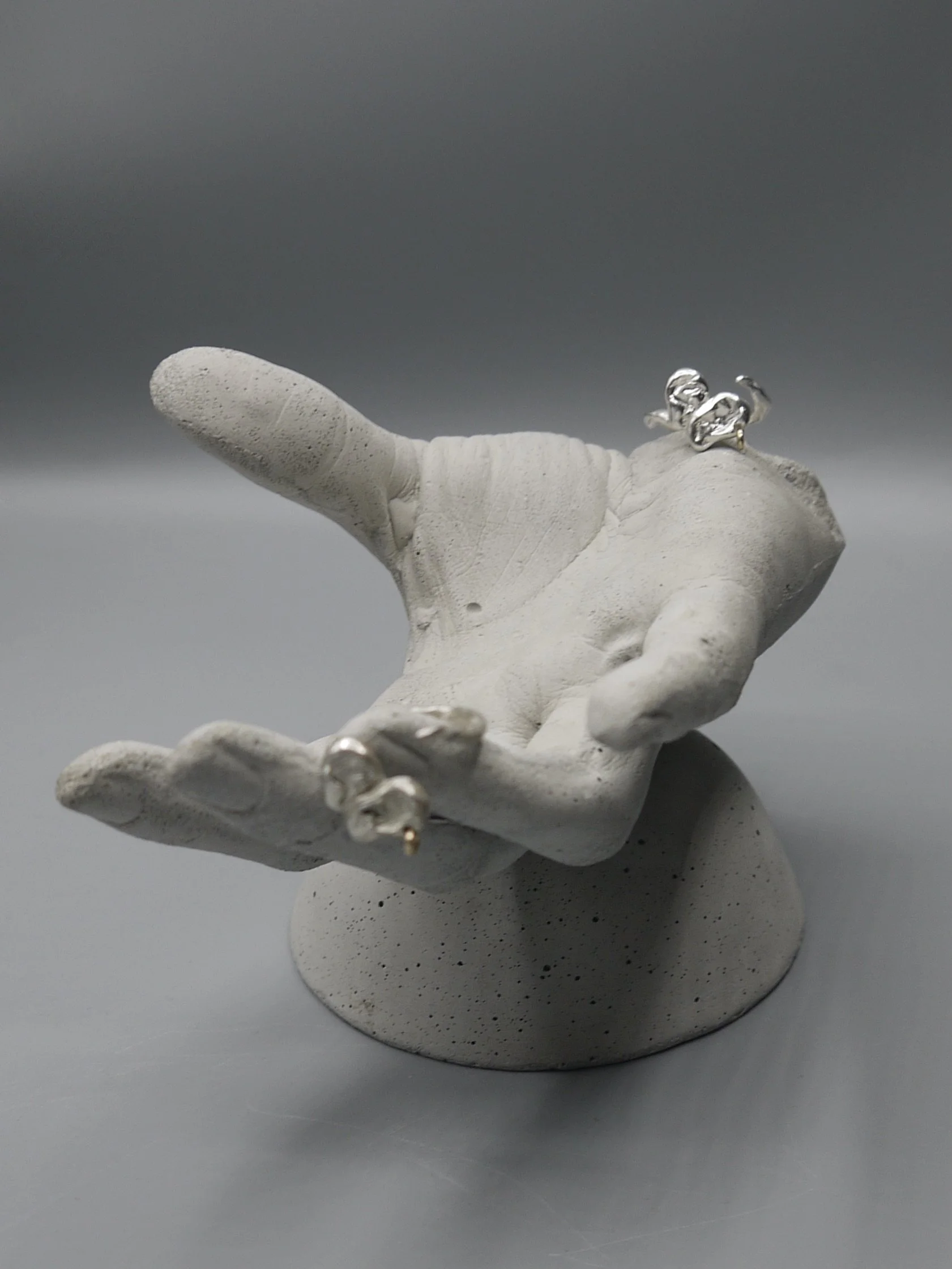 New collaboration with jeweller MATILDA LITTLE. Inspired by the interweaving theme of body parts throughout both of the artist’s work, Lucy and Matilda worked together to create two objects that function separately but are made to interact with one another. One designed to be worn - the Ear-Ring, and the other designed to wear, the Hand-Stand.